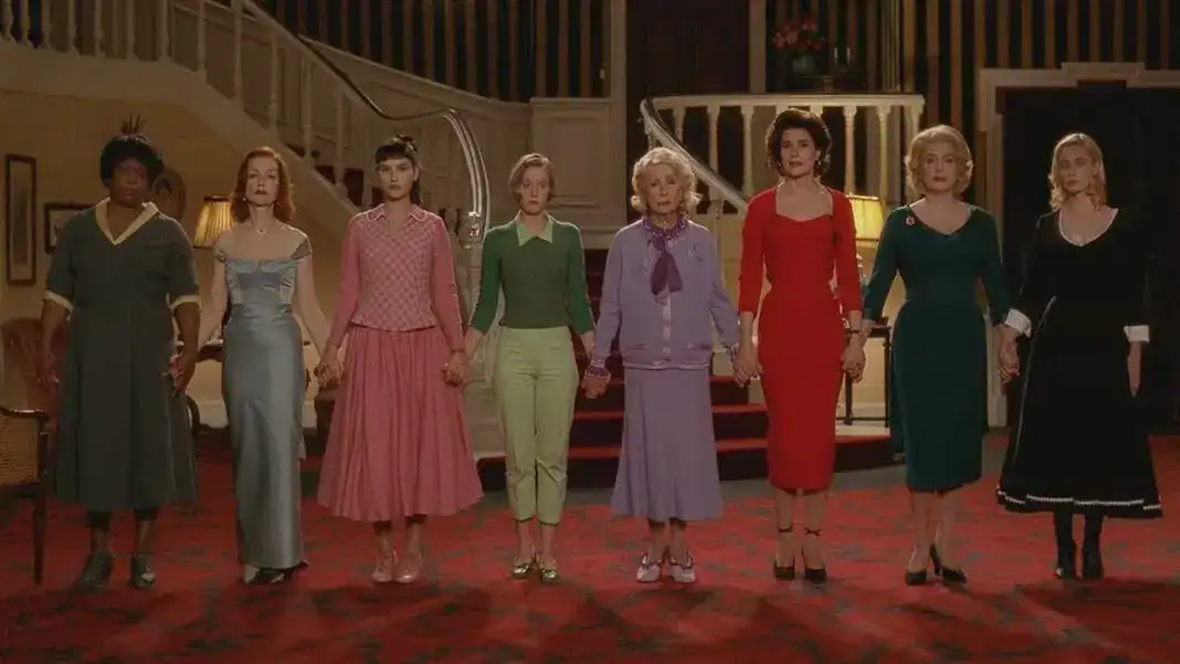 这是一个阿加莎·克里斯蒂式的悬疑故事,但更是一部向50年代好莱坞道格拉斯·瑟克和文森特·明奈利的致敬之作。八个女人被困在冰天雪地里的一所乡村别墅,主人遭暗杀,八位女性人人均有动机,每人均得到一首法国经典歌曲以表达自己的内心世界。(周黎明《西片碟中碟》)