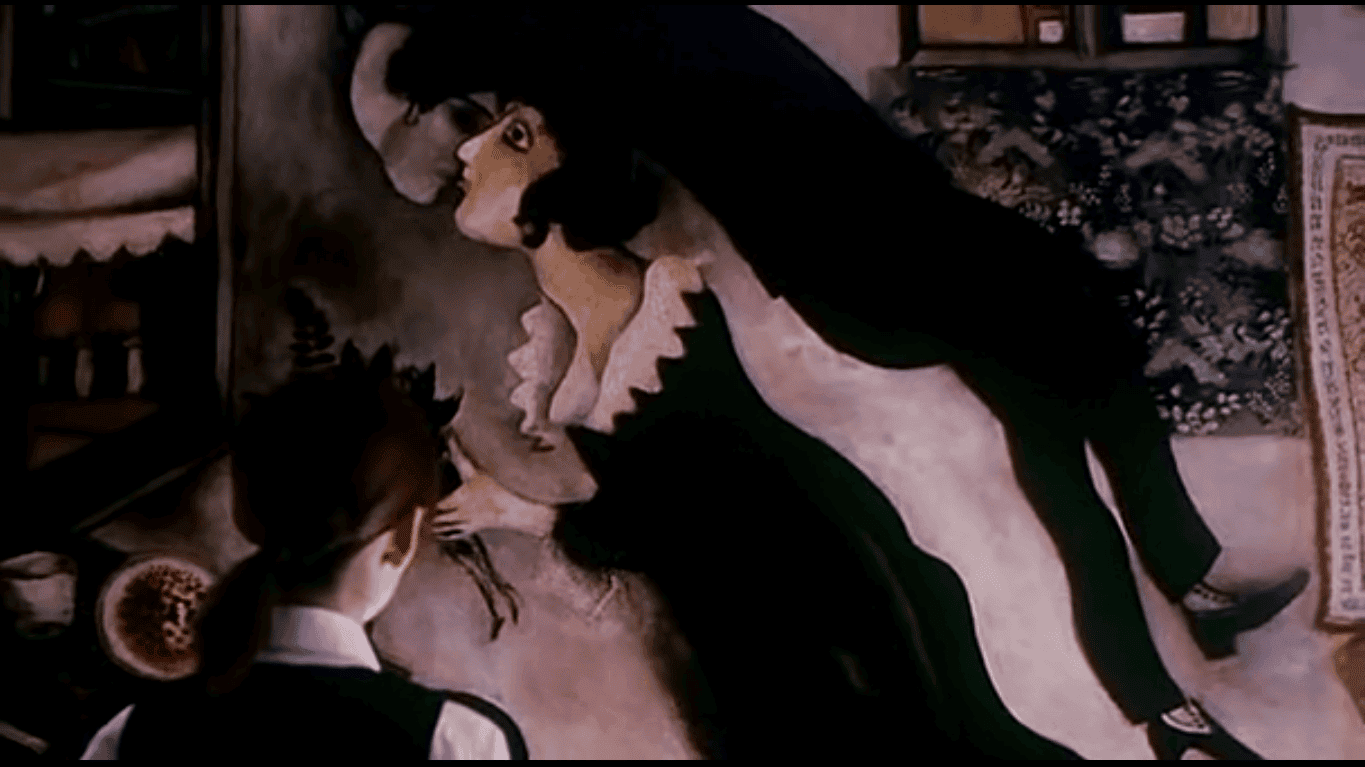 《像鸡毛一样飞》剧照,夏加尔的《生日》