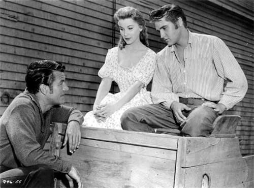 1956年[铁血柔情]中猫王唱的“Love Me Tender”的一段是在试映之后,反应很糟糕才拍的,因为观众对他的人物的命运很不满,但这个片段却加剧了这个错误。[铁血柔情]是猫王主演的影片中,唯一一部不是他拿最高报酬的。(看电影杂志)